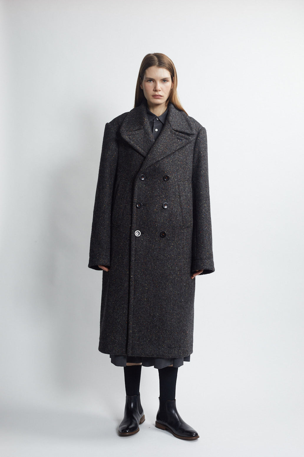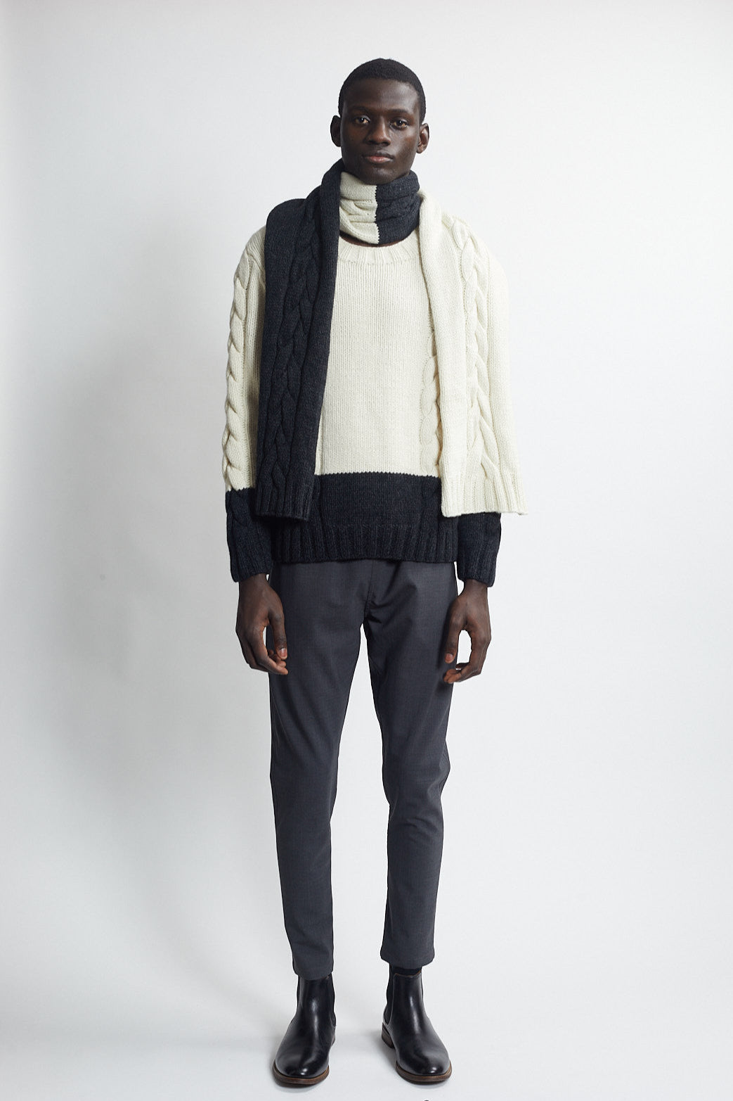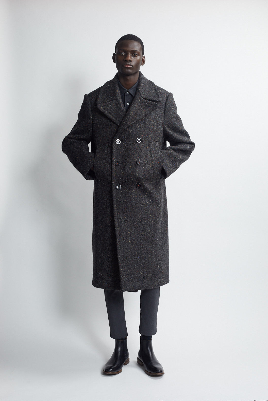a collection rooted in presence and protection -- crafted for those who move with purpose. the perfect peacoat stands a a sentinel against the elements. while hand-knit sweaters and tailored trousers offer comfort and structure in equal measure. layers become acts of care. wrapping us in the weight of tradition and craftsmanship.